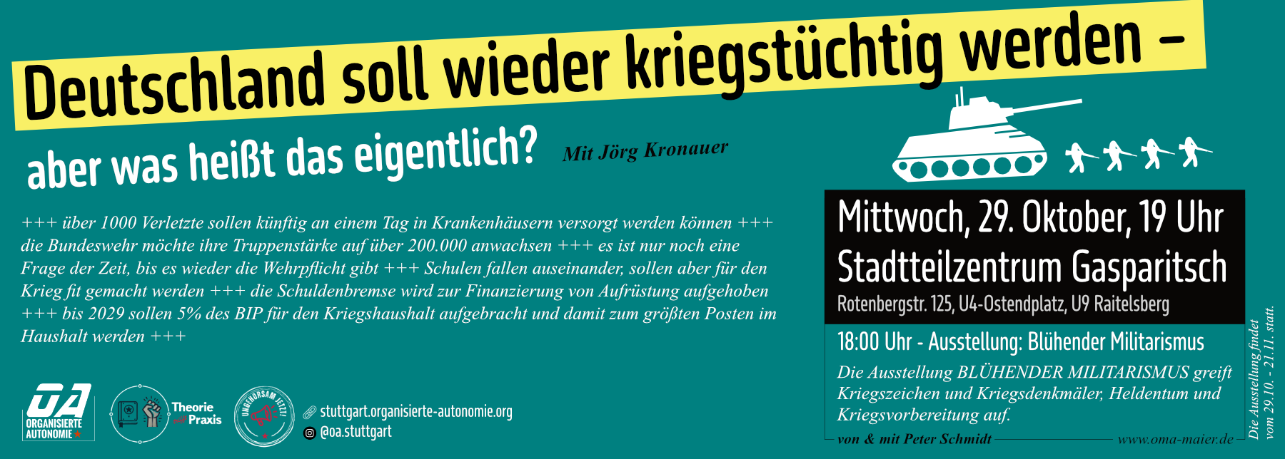 18:00 Uhr – Ausstellung: Blühender Militarismus – von & mit Peter Schmidt www.oma-maier.de