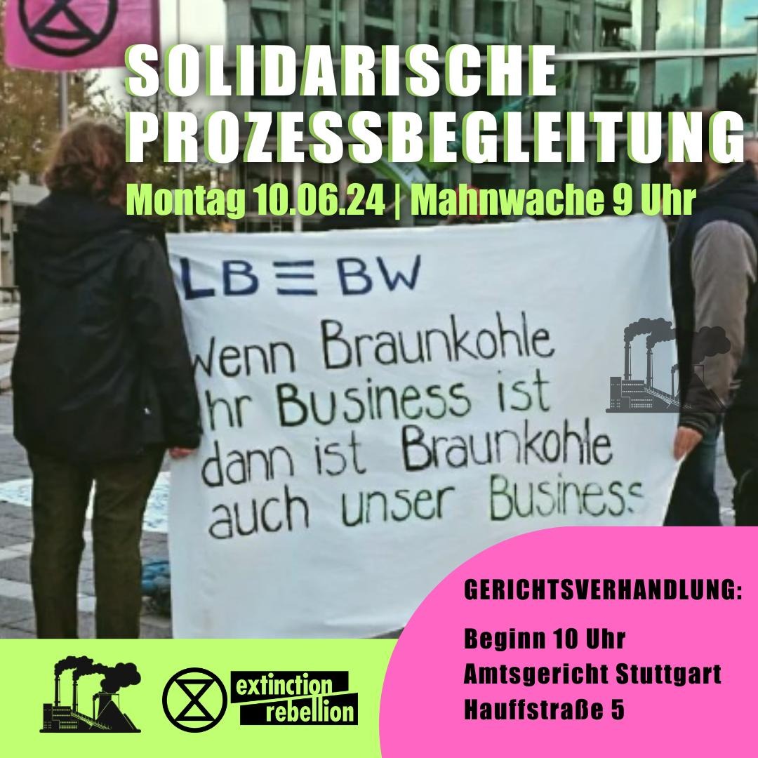 Beginn der Gerichtsverhandlung ist um 10 Uhr am 10.06.24. Zeigt eure Solidarität auf der angemeldeten Kundgebung um 9:00 Uhr vor dem Amtsgericht Stuttgart. Redebeiträge sind herzlich willkommen! :)