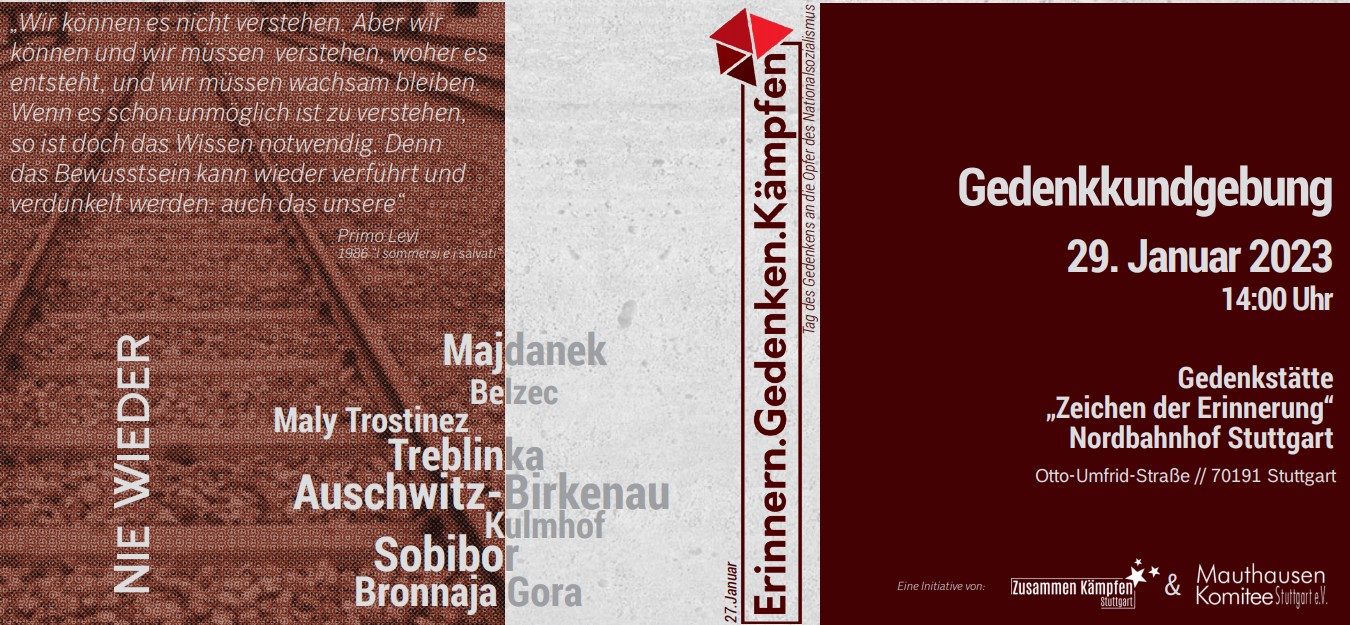 Von Stuttgart-Nord, dem Ort an dem sich heute die Gedenkstätte „Zeichen der Erinnerung“ befindet, wurden ab 1941 Jüd*innen sowie Sinti und Roma aus Württemberg in Zügen nach Auschwitz, Riga, Izbica und Theresienstadt deportiert. Die durch einen beispiellosen Antisemitismus, Antiziganismus und Hass auf jene Menschen, die nicht zur nationalsozialistischen „Volksgemeinschaft“ zählten, vorangetriebene Entmenschlichung führte dazu, dass weite Teile der Bevölkerung die Verbrechen vor ihrer Haustüre ignorierten oder dabei mitwirkten. Nach der militärischen Niederlage des Nationalsozialismus fanden viele Täter*innen in der neuen Bundesrepublik Deutschland problemlos zurück in ein ziviles Leben oder kamen gar zu Amt und Würden. So ist es nicht verwunderlich, dass bis heute in staatlichen Handlungen und in der Gesellschaft nationalsozialistische Muster erkennbar sind. Eben jene Muster der Entmenschlichung, des blinden Gehorsams, der Ignoranz gegenüber Marginalisierten und des Wegsehens. Dies gilt es zu kritisieren und zu bekämpfen!