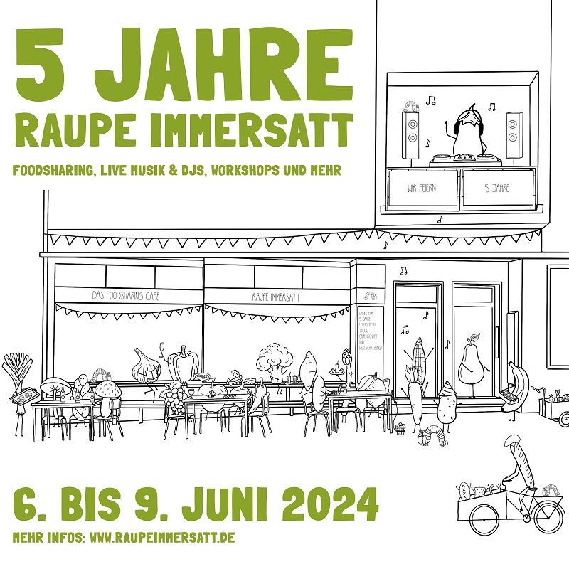 Fünf Jahre stehen für uns nicht nur für Lebensmittel-Teilen und Lebensmittelwertschätzung, sondern vor allem für Begegnungen. Die Raupe ist zum Nachbarschafts-Ort geworden, bringt Menschen unterschiedlichster Art zusammen und trägt zu einem Gemeinschaftsgefühl bei. Hier wurden Feste zelebriert, Freund:innenschaften geknüpft, die Pandemie gemeinsam durchstanden, von- und miteinander gelernt, fabelhafter Musik gelauscht und zahlreiche andere besondere Momente erlebt!