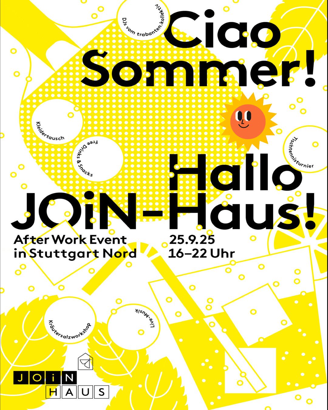 Bevor alle in die Sommerpause verschwinden, laden wir euch ein, am 25.9.2025 Ciao zum Sommer zu sagen und Hallo zum JOiN-Haus.