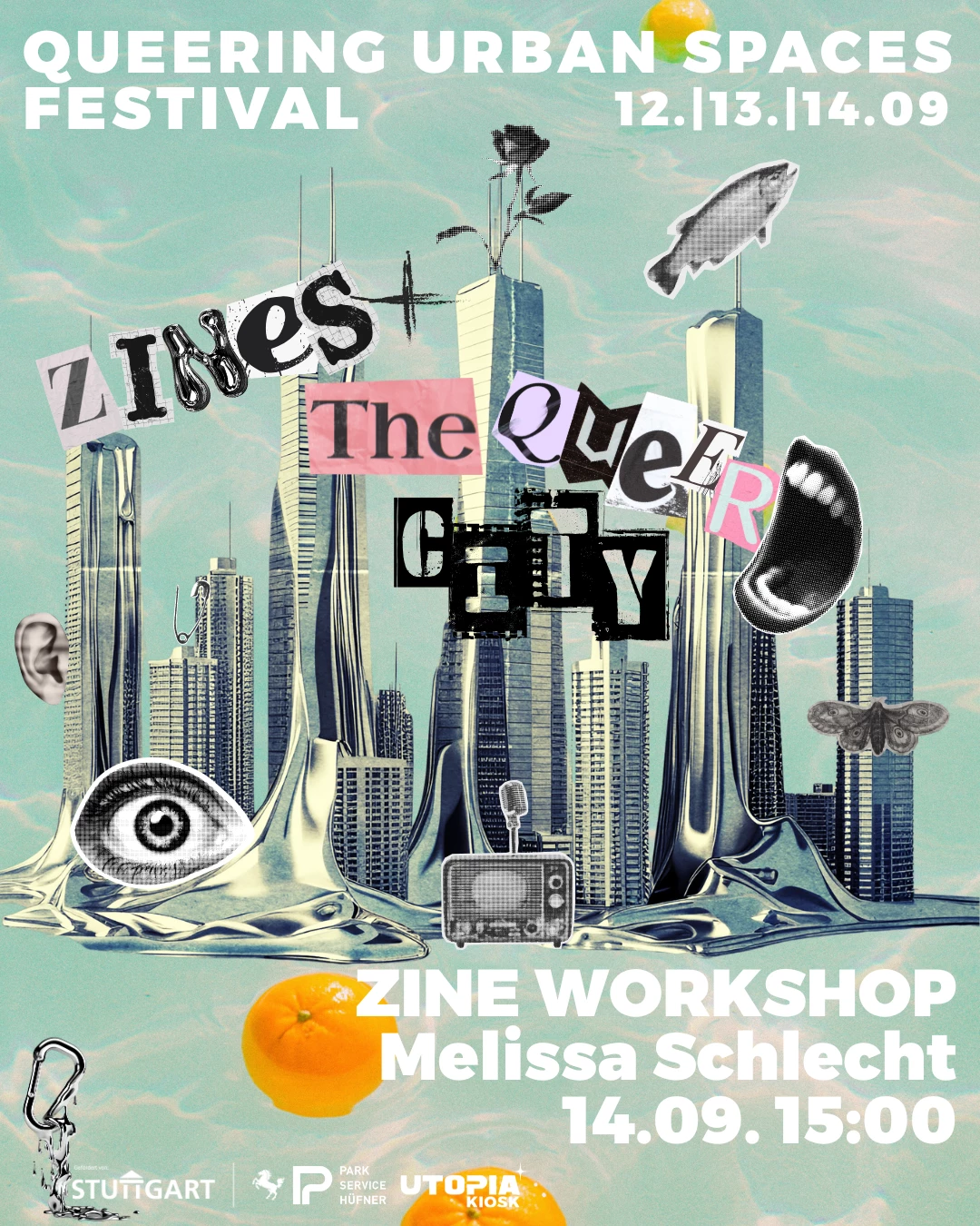 Zines sind kleine, selbstveröffentlichte Hefte, mit denen wir Ideen, Geschichten und Kunst außerhalb konventioneller Strukturen teilen können. Sie sind DIY, experimentell und kraftvolle Werkzeuge, um alternative Realitäten zu imaginieren und zu gestalten. In diesem Workshop laden wir euch ein, eure eigenen queeren Stadtlandschaften zu gestalten.Durch Collagen, Texte und Bilder stellen wir uns städtische Räume vor, die von Fürsorge, Sehnsucht und kollektiver Kreativität geprägt sind. Straßen, Ecken, Dächer und Gassen werden zu Seiten, auf denen Queerness das bestimmt, was gesehen, gefühlt und geteilt wird.