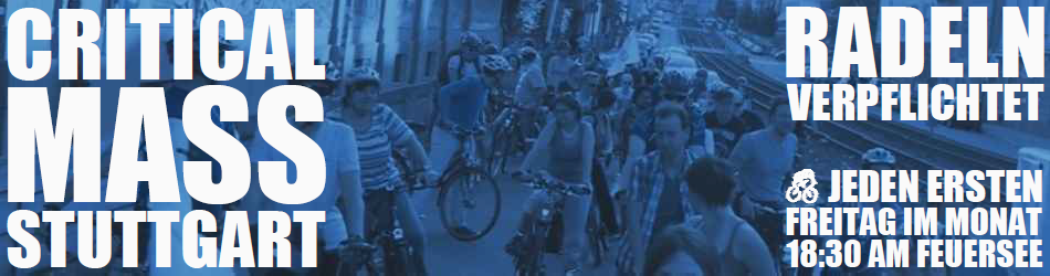 Die Critical Mass: mehr als nur eine Radtour in der Stadt. criticalmassstuttgart.wordpress.com Auf dieser Karte werden geplante Strecken veröffentlicht. Je nach den aktuellen Bedingungen kann der Verlauf in Abstimmung mit der Einsatzleitung angepasst werden. Infos auch auf criticalmass.in/stuttgart