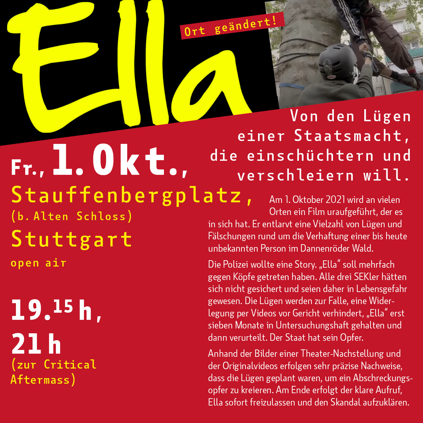 Am 1. Oktober 2021 wird an vielen Orten ein Film uraufgeführt, der es in sich hat. Er entlarvt eine Vielzahl von Lügen und Fälschungen rund um die Verhaftung einer bis heute unbekannten Person im Dannenröder Wald.