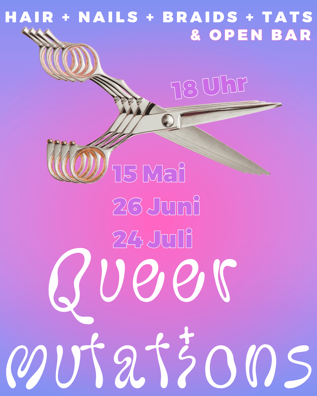 Am 3. April ab 18 Uhr laden wir euch zu einer ganz besonderen Night of Transformation ein! 💖 In unserem queeren Kunst- und Kulturraum könnt ihr euch in entspannter Atmosphäre die Haare schneiden, flechten (braiden) oder die Nägel machen lassen – auf Solidarbasis! Alles nach dem Motto: Come as you are, leave as you wanna be. ✨