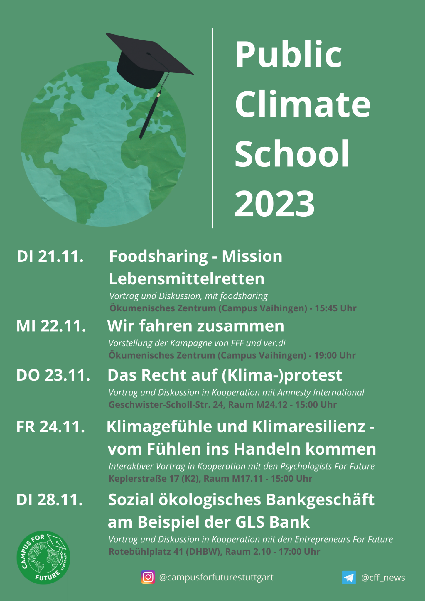 Es wird dabei jeweils vormittags ein deutschlandweites online Programm 💻 und nachmittags Vorträge und Workshops vor Ort bei uns in Stuttgart geben 📍
