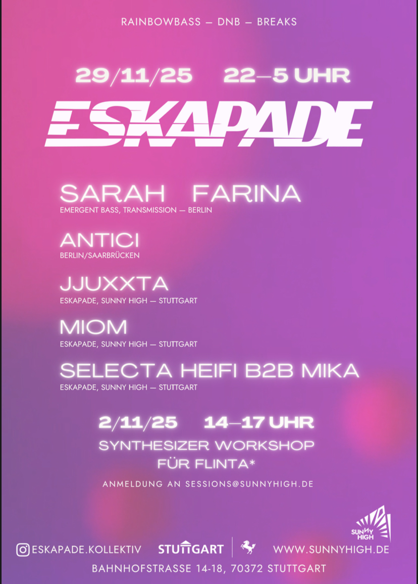Die Eskapade Residents sind auch wieder an den Decks: @mikamalismus , @selecta_heifi @mi0m_dj & @jjuxxta