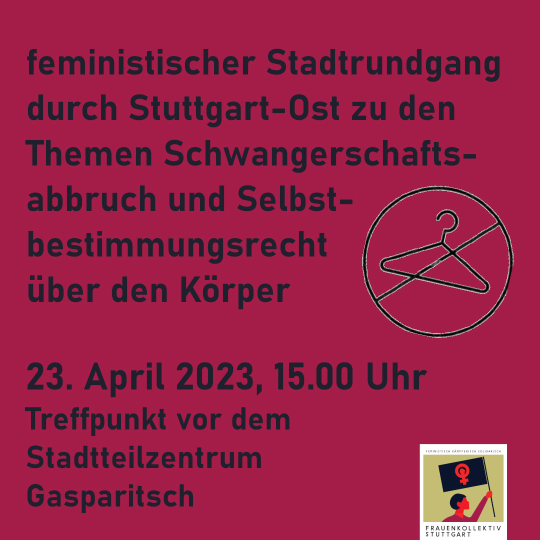 feministischer Stadtrundgang durch Stuttgart-Ost zu den Themen Schwangerschaftsabbruch und Selbstbestimmungsrecht über den Körper