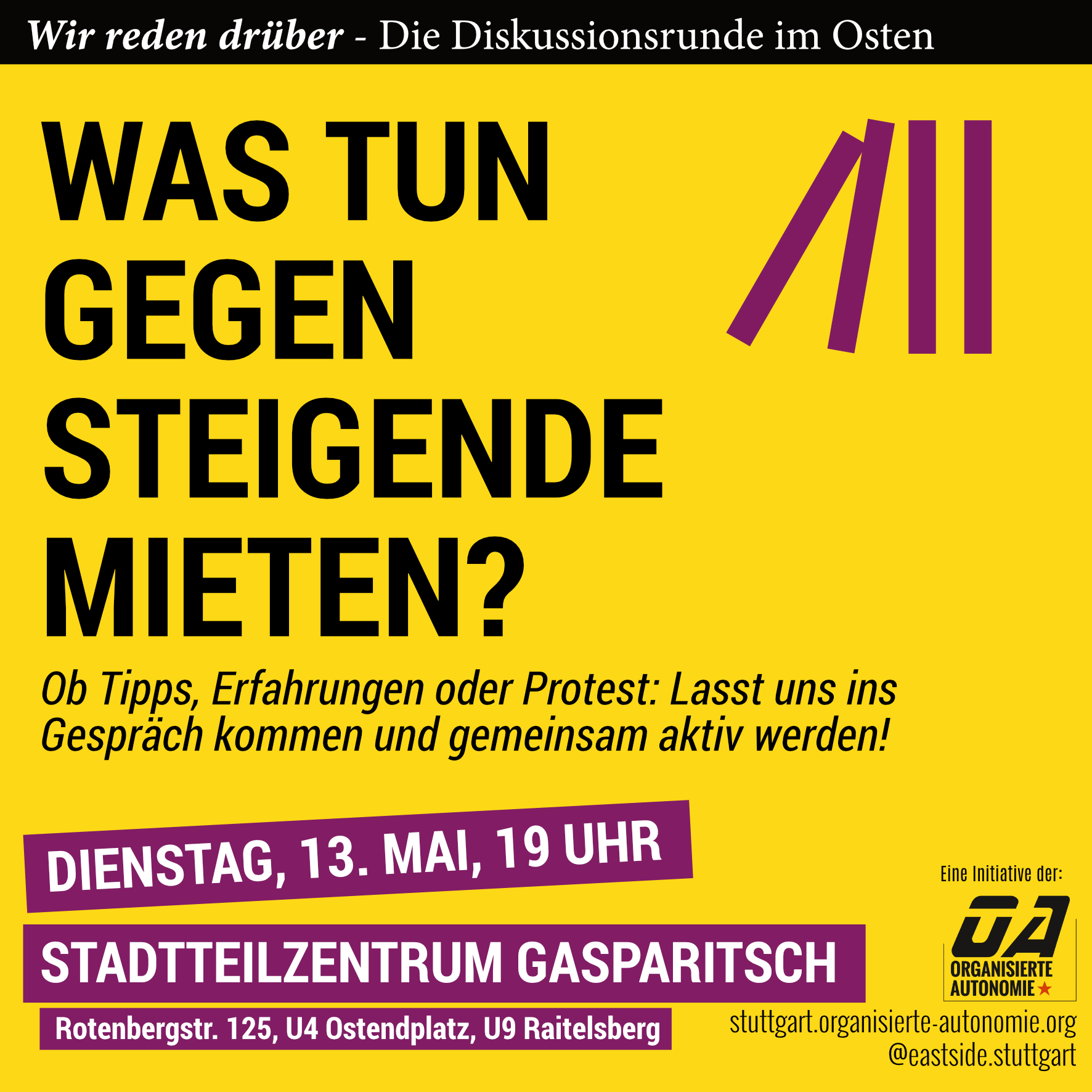 Ob Tipps, Erfahrungen oder Protest: Lasst uns ins Gespräch kommen und gemeinsam aktiv werden! Denn wir kämpfen für eine Stadt, in der wir alle gut und gerne leben – unabhängig von Einkommen, Herkunft oder Alter. Eine Stadt, in der Wohnraum bezahlbar bleibt und niemand verdrängt wird.