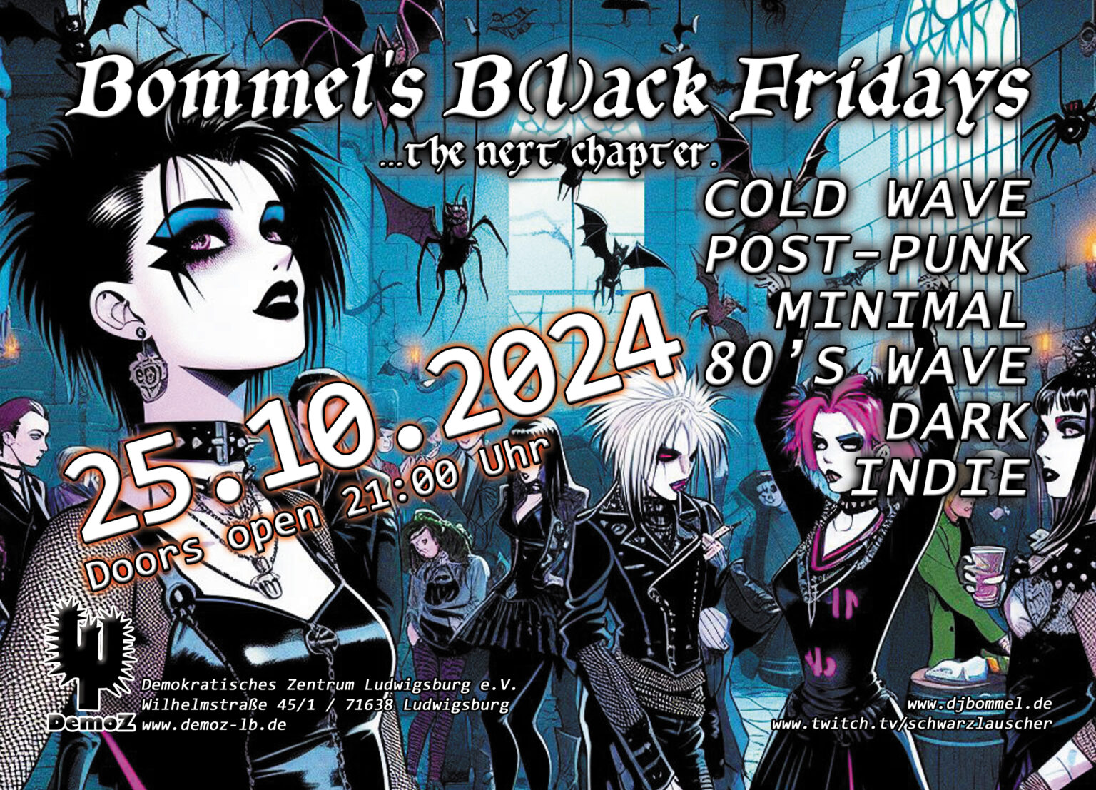 Seid ihr bereit für eine Nacht voller kühler Klänge und düsterer Rhythmen? Dann kommt zur nächsten B(l)ack Friday Party von Bommel!