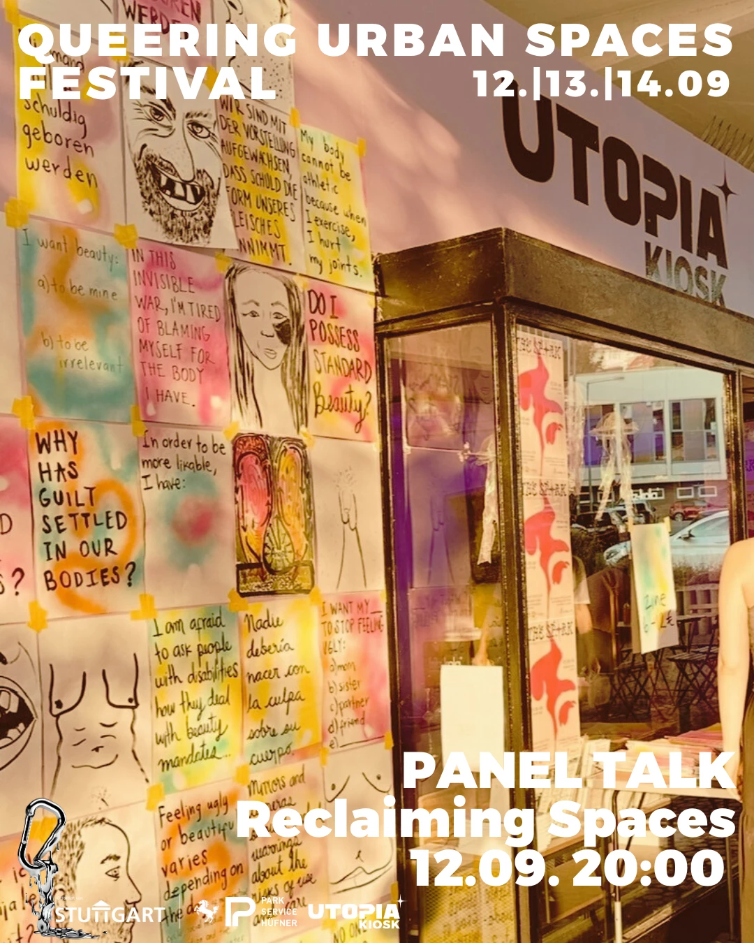 In this opening event of the Queering Urban Spaces festival, we gather with artists and performers who will share their visions and practices with us throughout the weekend. Through interventions in and around the UTOPIA Kiosk in Stuttgart, they will explore how queerness can reshape the streets, corners, and atmospheres of the city.
