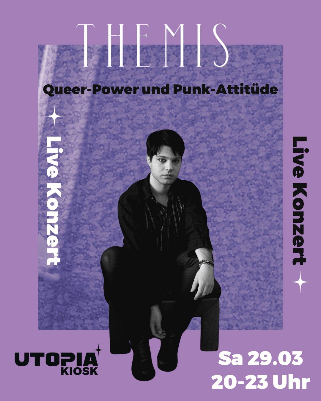 Themis zieht seine Hörer*innen auf die düstere Seite der Rock-Musik. Er verbindet gekonnt das Dunkle mit dem Bittersüßen und Gefühlvollen, kombiniert mit einer großen Portion Queer-Power und Punk-Attitüde.
