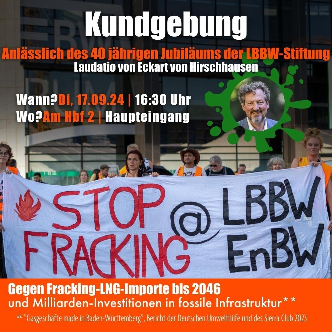 Während die LBBW das 40-jährige Jubiläum ihrer Stiftung feiert, investiert die Bank in klimaschädliche LNG-Terminals in den USA, damit Baden-Württemberg noch bis 2046 schmutziges Erdgas importieren kann – trotz des Ziels, bis 2040 klimaneutral zu sein. Diese "Stiftung" kann die Klimaschäden, die die LBBW verursacht, niemals ausgleichen.