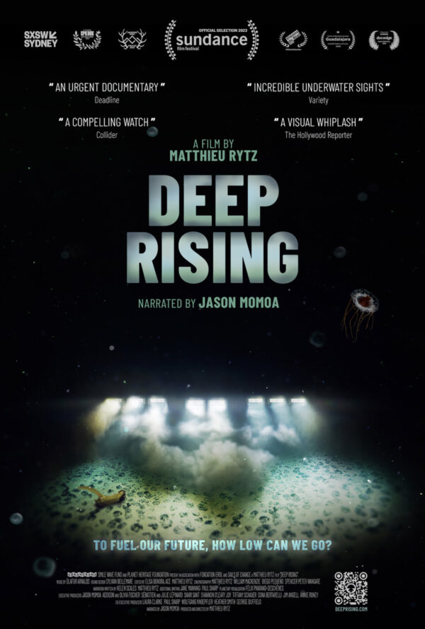 Die Dokumentation "Deep Rising" erschien 2023 und wird von dem kanadischen Dokumentarfilmer Matthieu Rytz gedreht, mit Jason Momoa als Erzähler und ausführendem Produzenten. Mit atemberaubenden Aufnahmen der schillerndsten Kreaturen der Tiefsee nimmt er die Zuschauer mit auf eine epische Reise in die tiefsten Tiefen unseres Ozeans - den unerforschten und unzugänglichsten Ort auf unserem Planeten. Es ist eine fesselnde Geschichte geopolitischer, unternehmerischer und wissenschaftlicher Intrigen und enthüllt das Innenleben der Internationalen Meeresbodenbehörde (ISA), der Organisation der Vereinten Nationen, die fast die Hälfte der Oberfläche unseres Planeten auf dem Meeresboden überwacht. Auch bietet der Film umfassenden Zugang zu Gerard Barron, dem CEO von The Metals Company (TMC), und zeigt die enge Beziehung zwischen der ISA-Führung und der Industrie.