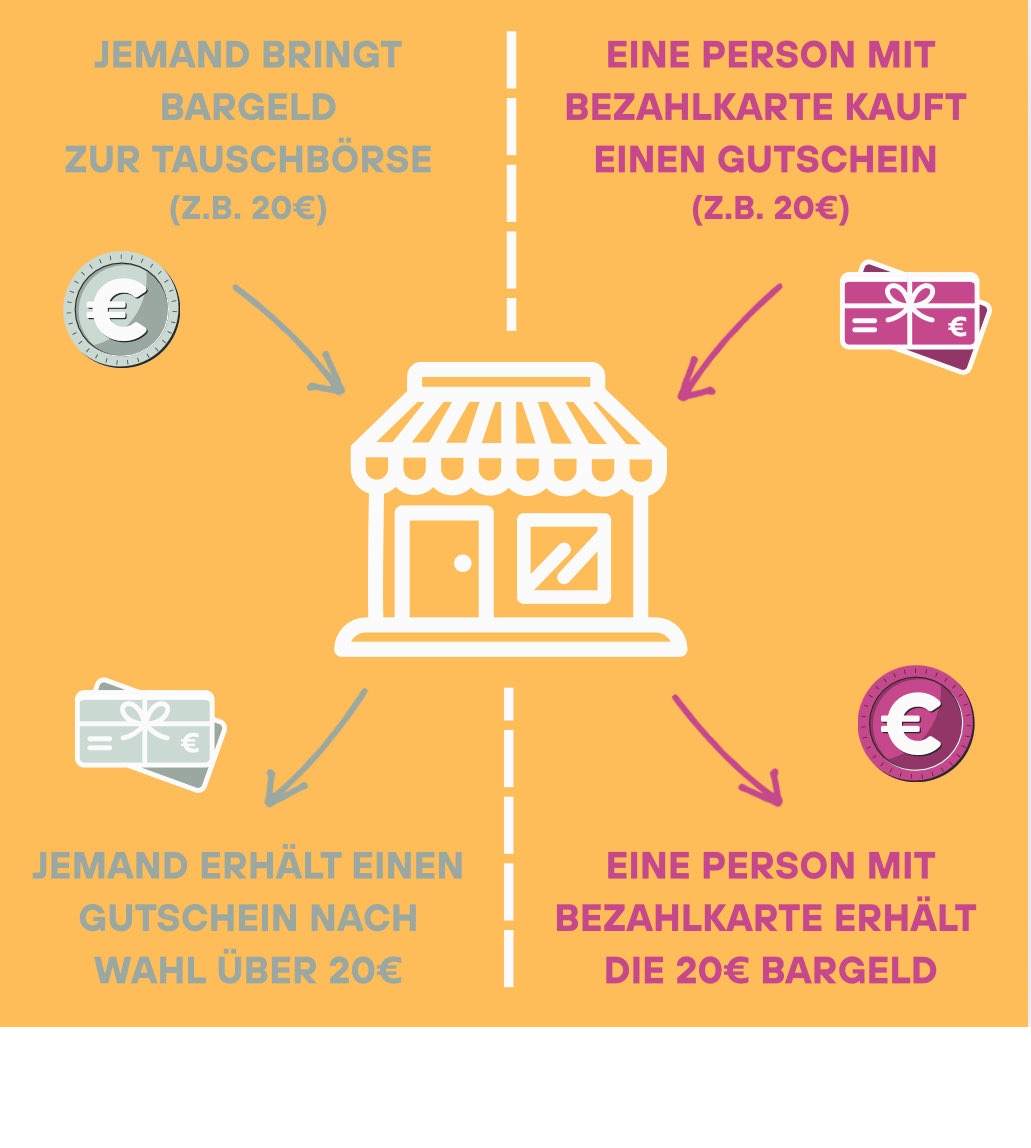 • Sie bringen diesen Gutschein zur Tauschbörse und tauschen ihn gegen Bargeld ein.