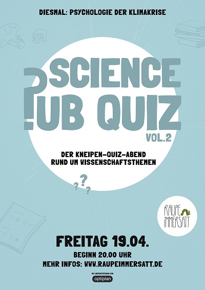 Die Antworten auf all das gibt’s bei der zweiten Runde Science Pub Quiz am 30. Mai in der Raupe. Dabei müsst ihr selbst keine Nerds oder Wissenschaftler:innen sein – euer Interesse für das Thema und ein bisschen Freude am Knobeln genügen voll! Schnappt euch eure Rate-Freund:innen und habt mit uns einen guten Abend :)