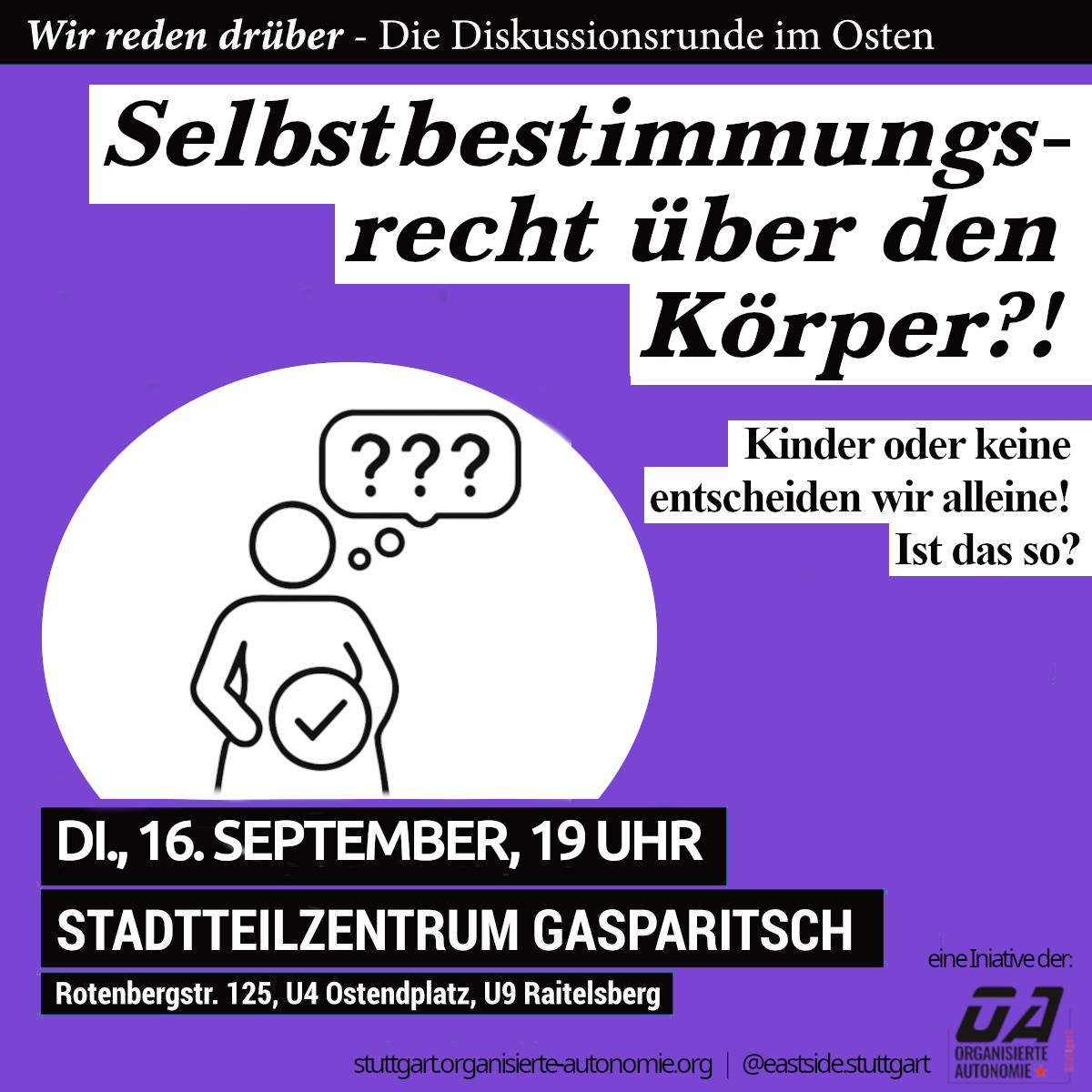 Die Diskussionsrunde startet am Dienstag, den 16. September ab 19 Uhr im Stadtteilzentrum Gasparitsch (Rotenbergstraße 125, 70190 Stuttgart).