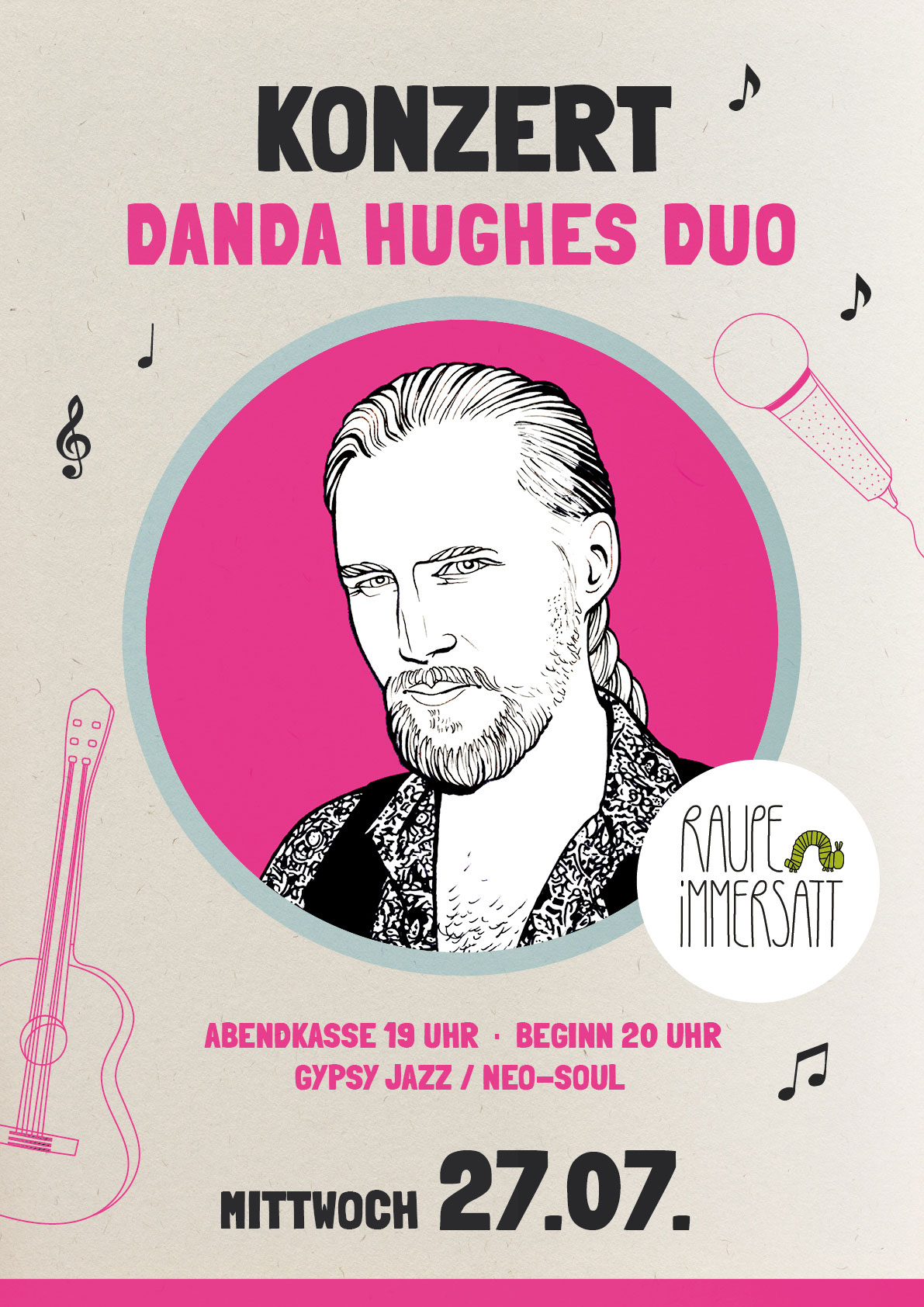 Der Vollblutmusiker Danda Hughes verschmilzt verschiedenste Einflüsse von Gypsy Jazz über Folk bis RnB zu etwas zeitlos Modernem: „Neo-Soul“ im Stile der Londoner Szene. Dabei ist er stets offen für Neues, Altes und Unkonventionelles.