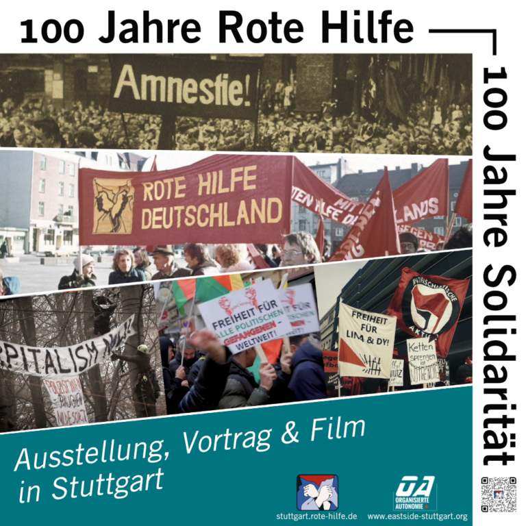 Ausstellung von 20.12. – 10.01.2025: Die Ausstellung zeigt die Geschichte der Roten Hilfe(n) und deren Solidaritätspraxis.