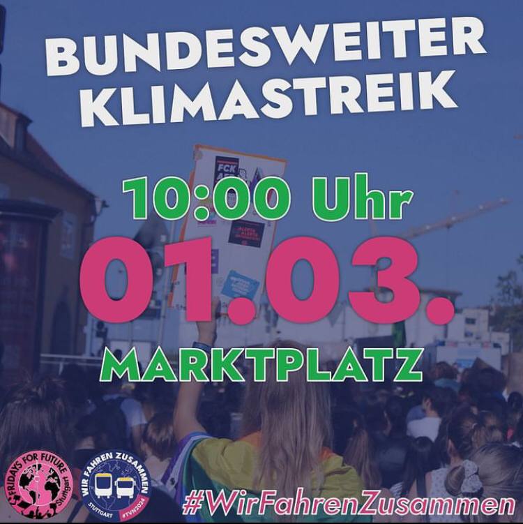 Am 1.März ist der bundesweite Klimastreik! In Stuttgart starten wir um 10 Uhr auf dem Marktplatz vor dem Rathaus🔥🔥🔥