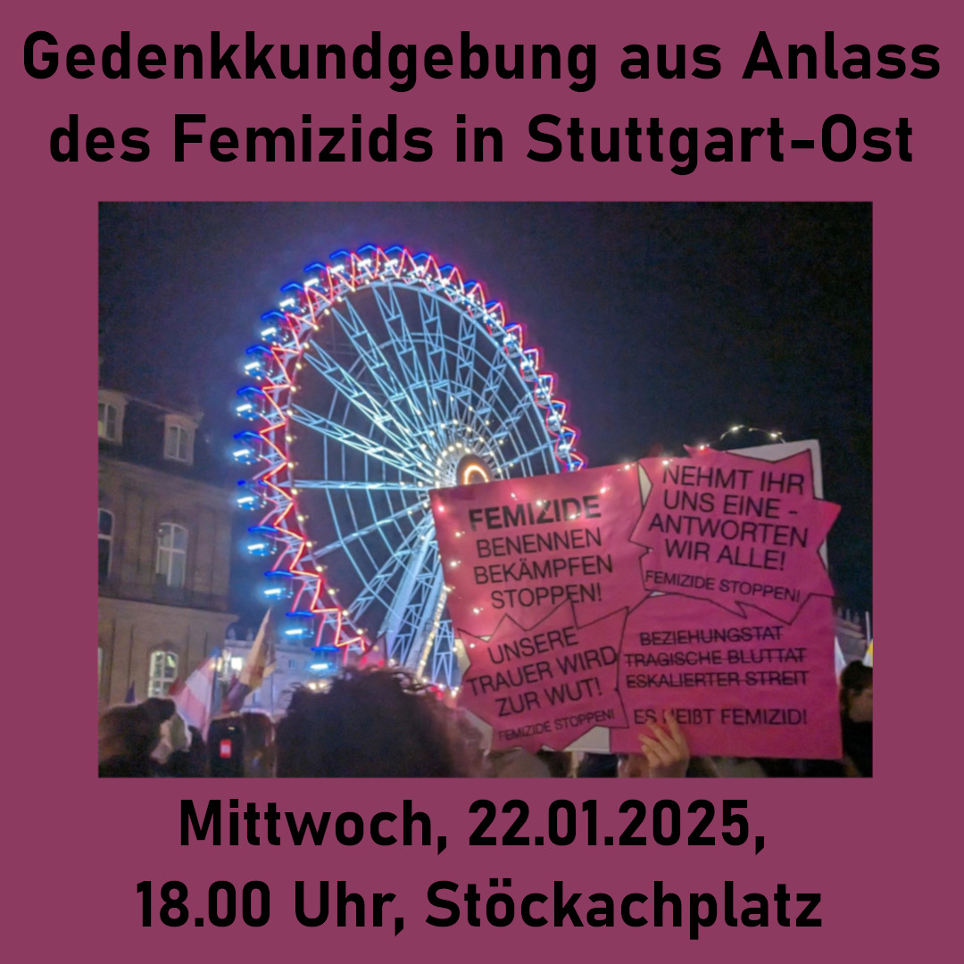 Femizide stoppen! Gedenkkundgebung anlässlich der getöteten Frau in Stuttgart-Ost!