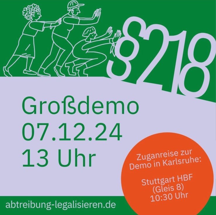 Kommt mit uns am 07. Dezember 2024 in Karlsruhe auf die Straße. Lasst uns laut und entschlossen deutlich machen: Abtreibungen legalisieren – jetzt!