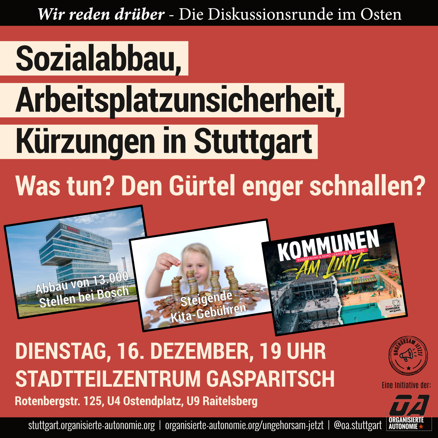 Diskussionsrunde: Sozialabbau, Arbeitsplatzunsicherheit, Kürzungen in Stuttgart - Was tun? Den Gürtel enger schnallen?