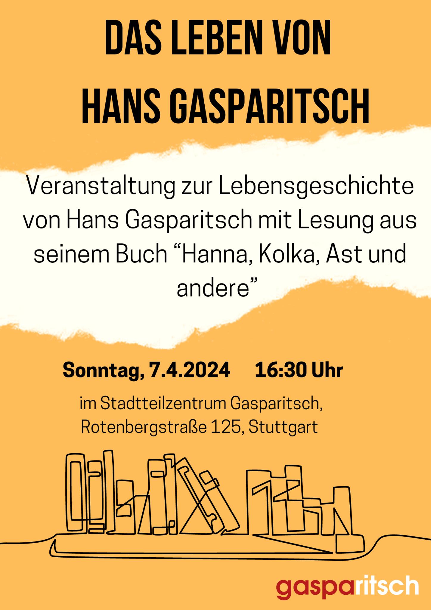 Das Leben von Hans Gasparitsch - Veranstaltung zur Lebensgeschichte von Hans Gasparitsch mit Lesung aus seinem Buch „Hanna, Kolka, Ast und andere“