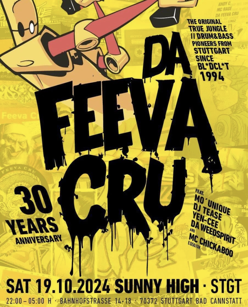 Da Feeva Cru bestehend aus Mo’Unique, Yen-Cee, Da Weedspirit und Tease etablierten ab 1994 mit Jungle und Drum&Bass ein bis dato in Stuttgart nicht existentes Musikgenre und legten so den Grundstein für die bis heute lebendige lokale Drum&Bass Community.