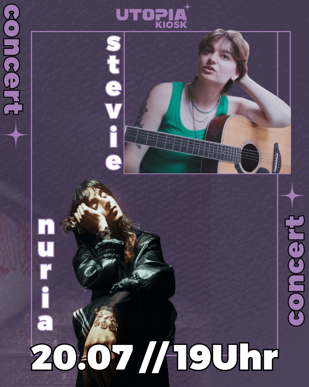 Hello queers!!! Save the date for the next concert at our UTOPIA Kiosk! On Sunday 20th of this month we're hosting two super cool artists \(๑╹◡╹๑)ノ♬ the concert will start at 19Uhr and here's a bit of info about them: